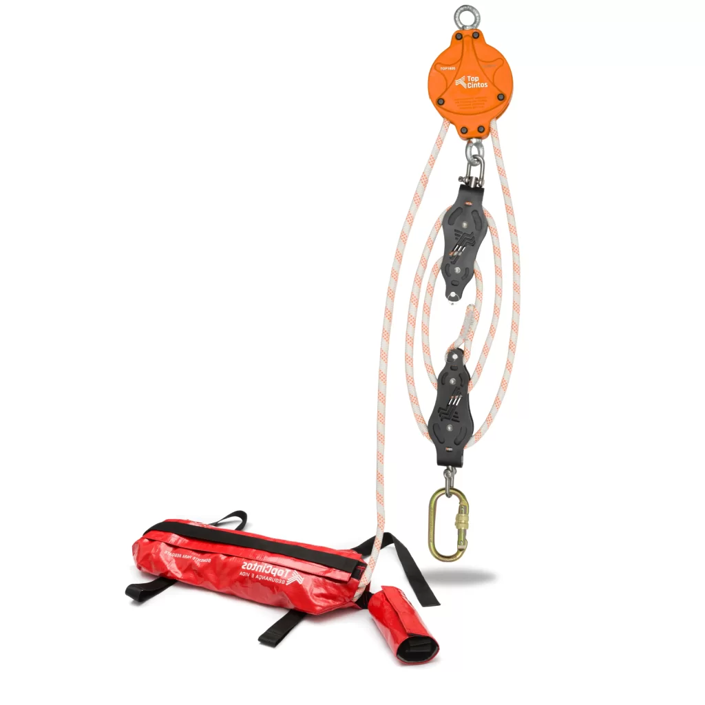 O TOP1800 | Kit Resgate 5x1 para Cesto Aéreo foi desenvolvido para operações de resgate e içamento em trabalhos com cesto aéreo, trazendo um sistema de polias 5:1 que reduz o esforço no acionamento e melhora o controle durante a manobra. O conjunto conta com mecanismo de travamento da corda com acionamento automático para aumentar a segurança em caso de alívio involuntário, além de corda semi-estática de 32 m (11 mm) e carga de trabalho de até 180 kg.